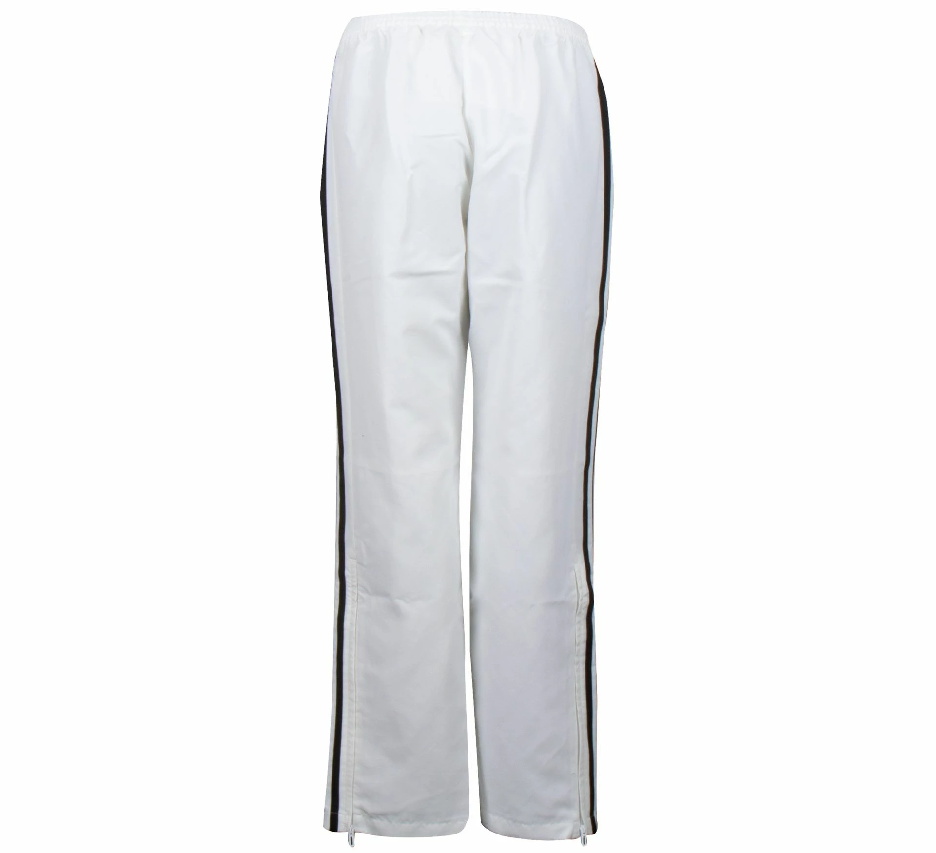 normal; elastischer Taillenbund mit Kordelzug; kurze Reißverschlüsse unten an den Hosenbeinen