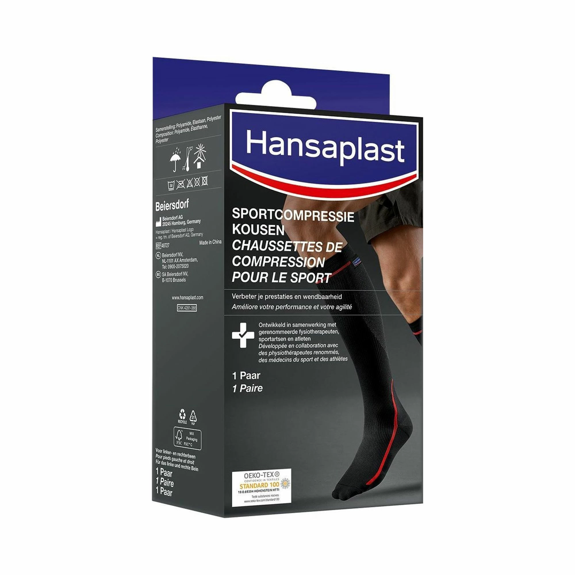 Die Hansaplast Sports Kompressionsstrümpfe wurden entwickelt, um die Muskeln bei körperlichen Aktivitäten und Sport zu komprimieren und zu unterstützen. Die Sportkompression hilft auch, die Muskelregeneration zu fördern.