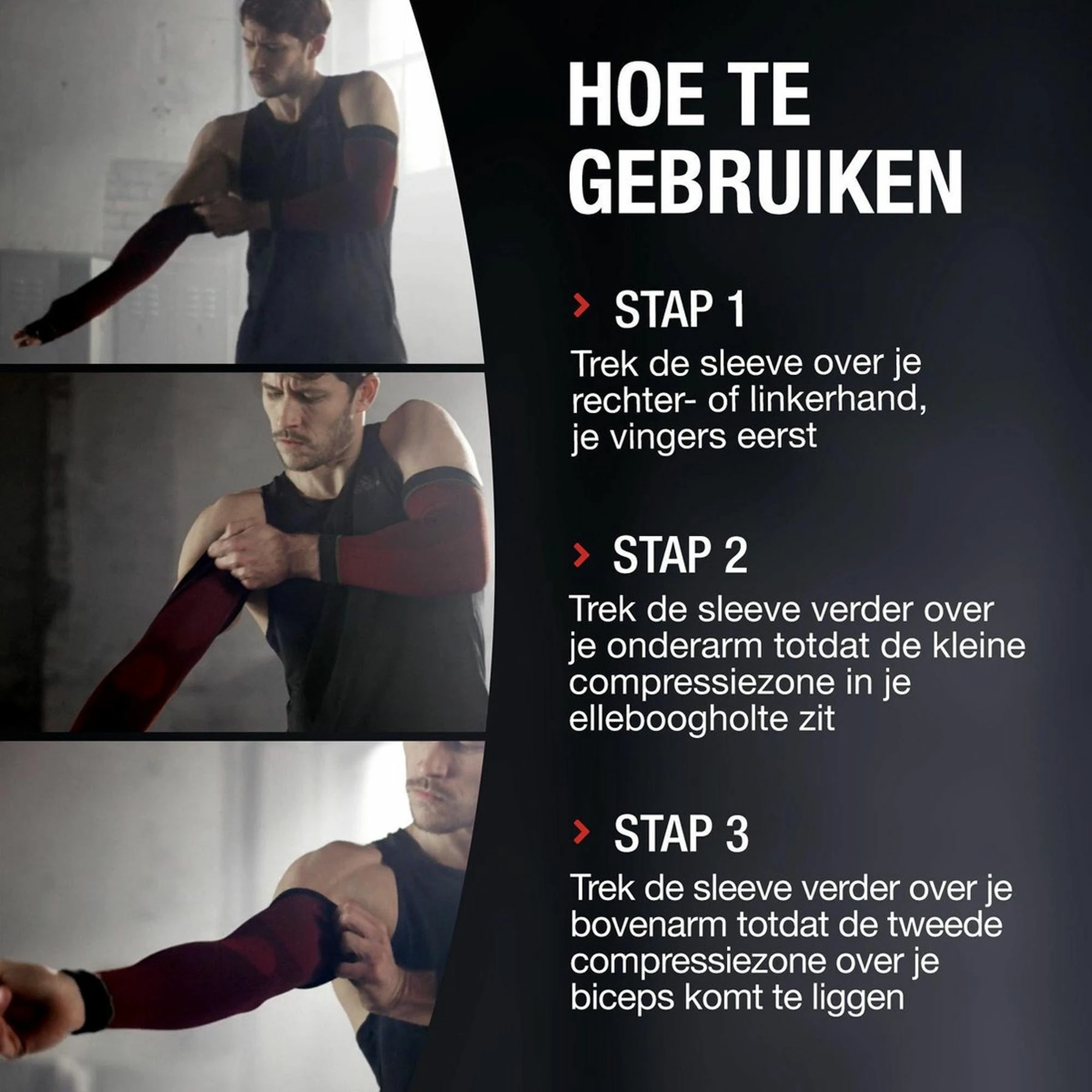 Ziehen Sie den Ärmel über Ihre rechte oder linke Hand, zuerst die Finger (Hinweis: Das Etikett sollte sich immer auf der Rückseite befinden); Ziehen Sie den Ärmel weiter über Ihren Unterarm, bis sich die kleine Kompressionszone in Ihrer Ellenbogenhöhle befindet. Ziehen Sie den Ärmel weiter über Ihren Oberarm, bis die zweite Kompressionszone über Ihrem Bizeps liegt. Ziehen Sie den Stoff glatt damit er nicht knittert