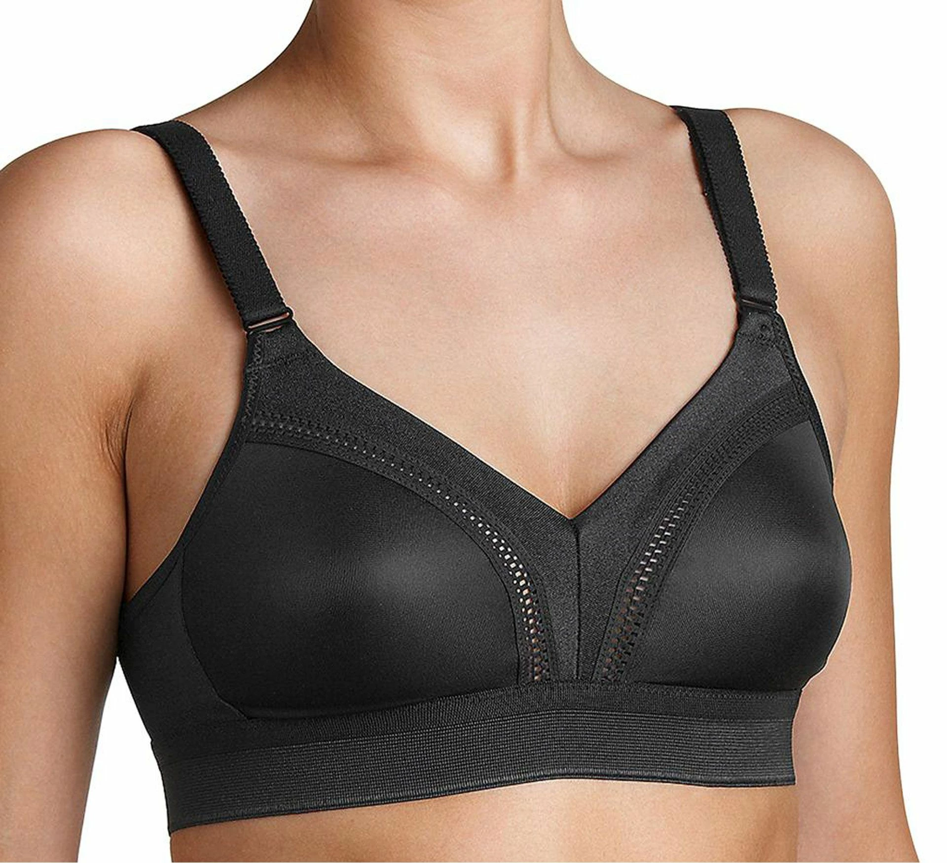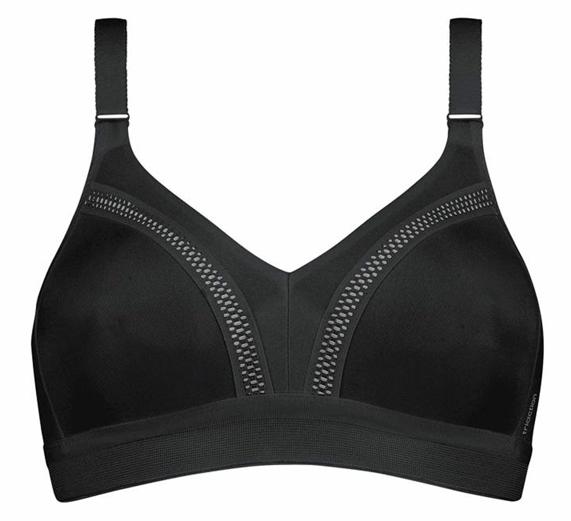 Der Triaction Sport BH hat weiche TrĂ€ger die mit Klettverschluss GröĂen verstellbar sind. Das weite Unterbrustband bietet extra Komfort.